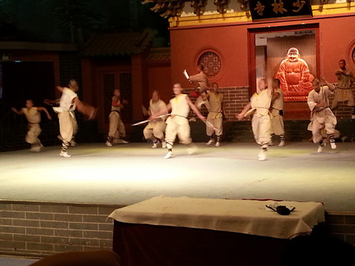 下午,我們驅(qū)車趕往登封,參觀了號(hào)稱“禪宗祖庭”、“天下武功出少林”的嵩山少林寺。雖然在這里只逗留了短短的幾個(gè)小時(shí),但也深深地感受到了禪宗文化。晚上的《禪宗少林·音樂(lè)大典》山地實(shí)景演出,規(guī)模宏大,音畫一體,上百人的禪武演繹,春夏秋冬的景觀變化,直指心性,讓我們這一行人備受震撼。